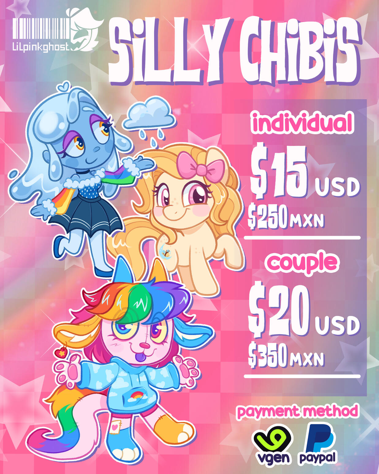 - I will only use this method to communicate with my clients! If I’m unable to reply here in several days (For example, if my computer has stopped working or I don’t have access to my computer), you can DM on my instagram @lilpinkghost or in discord LilPinkGhost#2084- My commission work hours are Monday to Friday, from 11:00 AM to 6:00 PM GMT. I recommend following me on social media or joining my Discord server to stay updated on my activity, any announcements, or unexpected delays.♡USE♡
