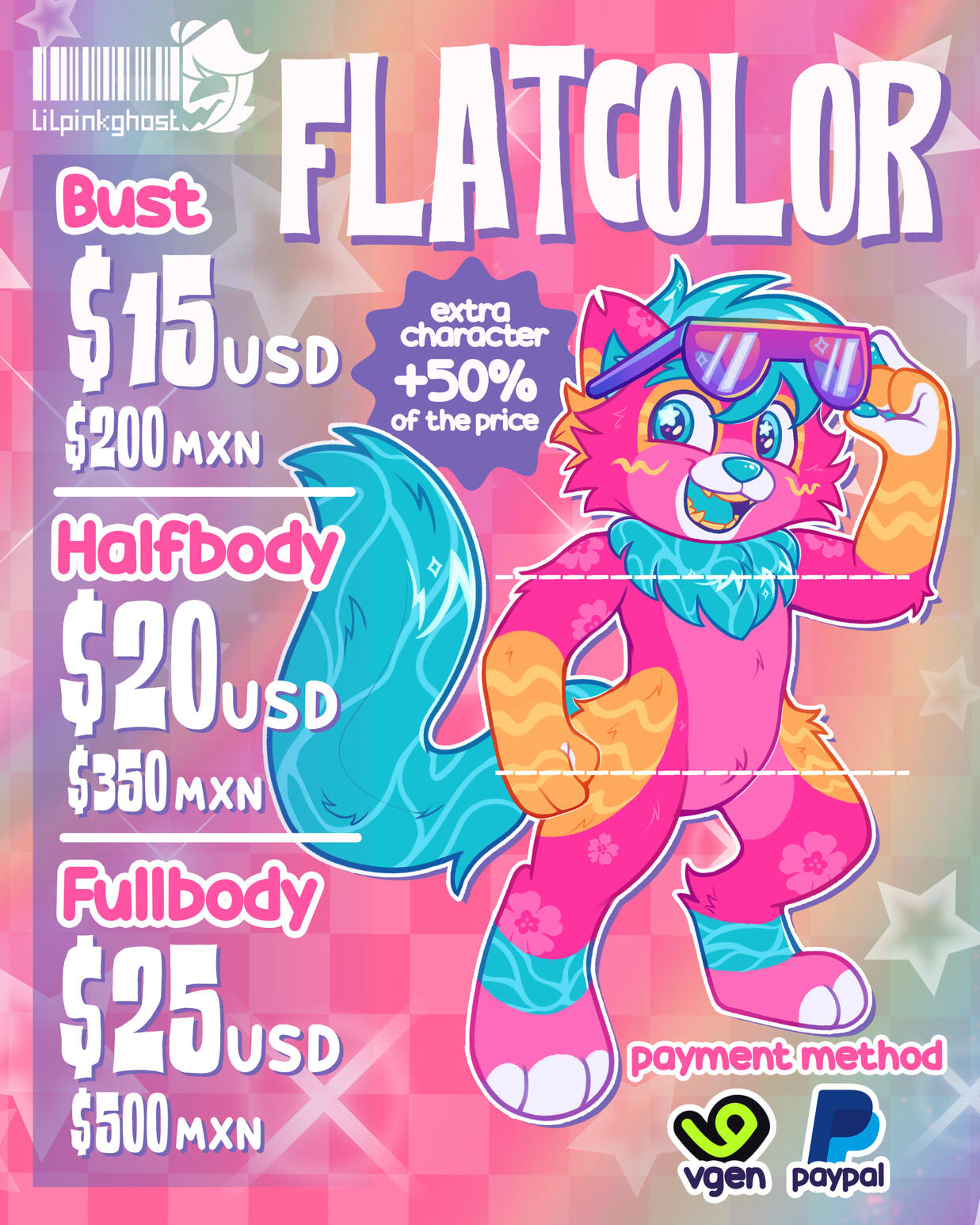 - The colors and shapes of the character may change as been adapted to my style, please keep that in mind before commissioning!- The commissions will be put on a public queue, social media, portfolio and stremings sometimes. If you want your commission to be anonymous or not be public, please let me know!.- If you want to include any of my characters / avatar / OC’s in the commission, please ask me first. Im not comfortable with commissions with my characters in any sexual or romantic topics.- Please make sure my style fits what you are looking for! i love working with colorful characters and scenarios in a cartoon style. im pretty reflixble with what i can draw, but please consider that maybe some stuffs don't work in my style.- I will only work with reference images, it's pretty hard to know what the client wants in text descriptions! and if the reference has any noticeable shading, it might be hard for me to pick the accurate colors or details.- The interest that you may have in my commissions is appreciated and valued, but it must be considered that I have right to decline any commission, customer or cancel n refund, no matter what the reason is.